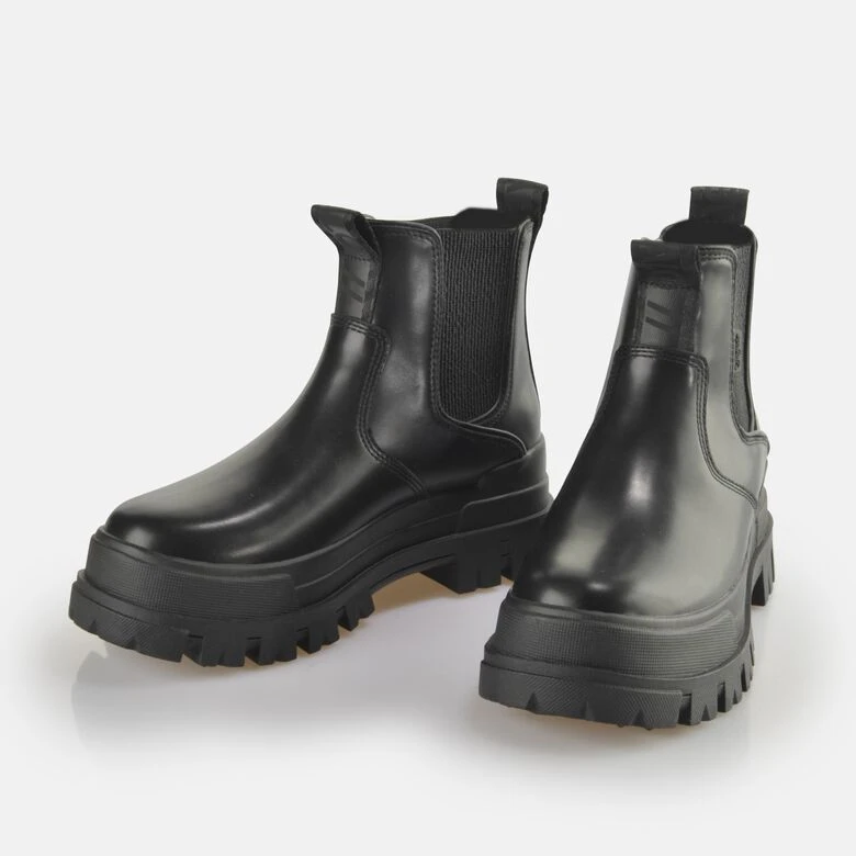 Robust, trendstark und äußerst cool: So präsentiert sich der schwarze Aspha Chelsea Mid Ankle-Boot! Die transparente Profilsohle ist ein echter Hingucker. Für einen schnellen und unkomplizierten Einstieg sorgen die Stretcheinsätze sowie die Zugschlaufe am Schaftrand.