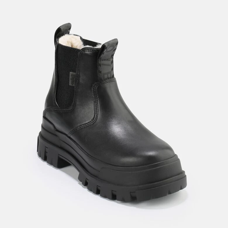 Unterstreicht Deinen Look: Der schwarze Aspha Chelsea Ankle-Boot kommt im trendstarken Design. Sein unifarbener Look macht ihn zu einem vielseitig kombinierbaren Piece für all Deine Styles. Eine 6,5 cm hohe Profilsohle rundet den coolen Look perfekt ab. Einfach reinschlüpfen und los geht’s!