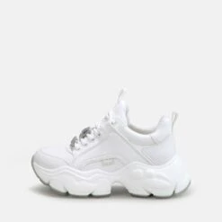 Der weiße Binary Ice Sneaker ist mit seinem unifarbenen Look ein vielseitig kombinierbares Piece für Deine Lieblingslooks. Die angesagte 6,5 cm hohe Plateausohle sorgt zusammen mit dem niedrigen Schaft für eine sportive Optik. Ein echter Eyecatcher ist die Perlenverzierung an der durchgehenden Schnürung.