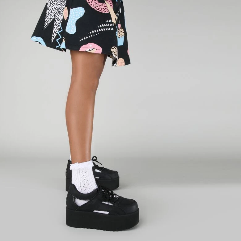 Sein disruptives Aussehen setzt neue Maßstäbe in Sachen Footwear: Der Buffalo Classics Tower Cut Outs „schwarz“ Sneaker gehört zu der Reimage-Kollektion der einstigen Klassikern aus den 90ern und kommt mit einem geölten Nubukleder-Obermaterial, lateralen Cut-Outs und einer ebenmäßigen, 6 cm hohen Tower-Plateausohle.