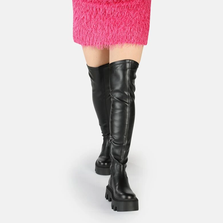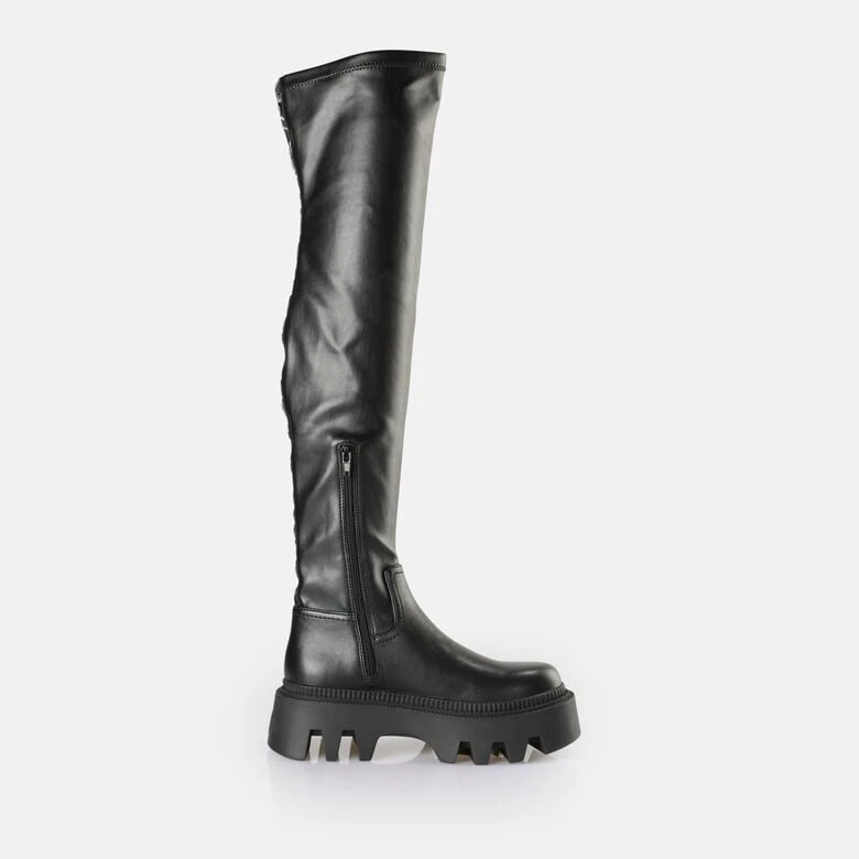 Hol Dir mit dem Flora Overknee Boot den ultimativen Style. Eine profilierte Plateausohle und eine vegane Nappaleder-Optik? High Fashion bekommt mit diesem stretchigen Overknee eine ganz neue Bedeutung. Zudem sorgt die Sohle aus Memory Foam für einen sanften Walk. Kombiniere die Overknees zu einem lässigen Oversize-Pulli oder einem weit geschnittenen Kleid und werde zum echten Headturner.