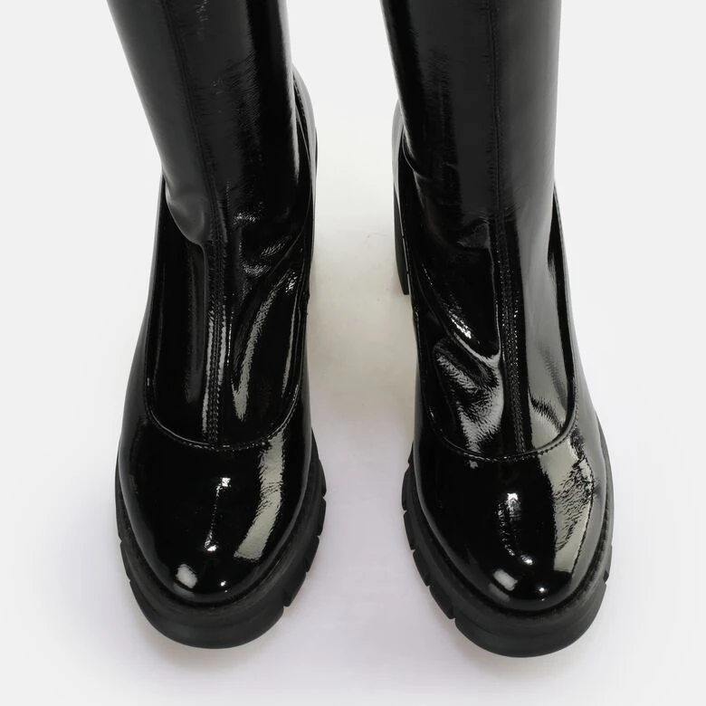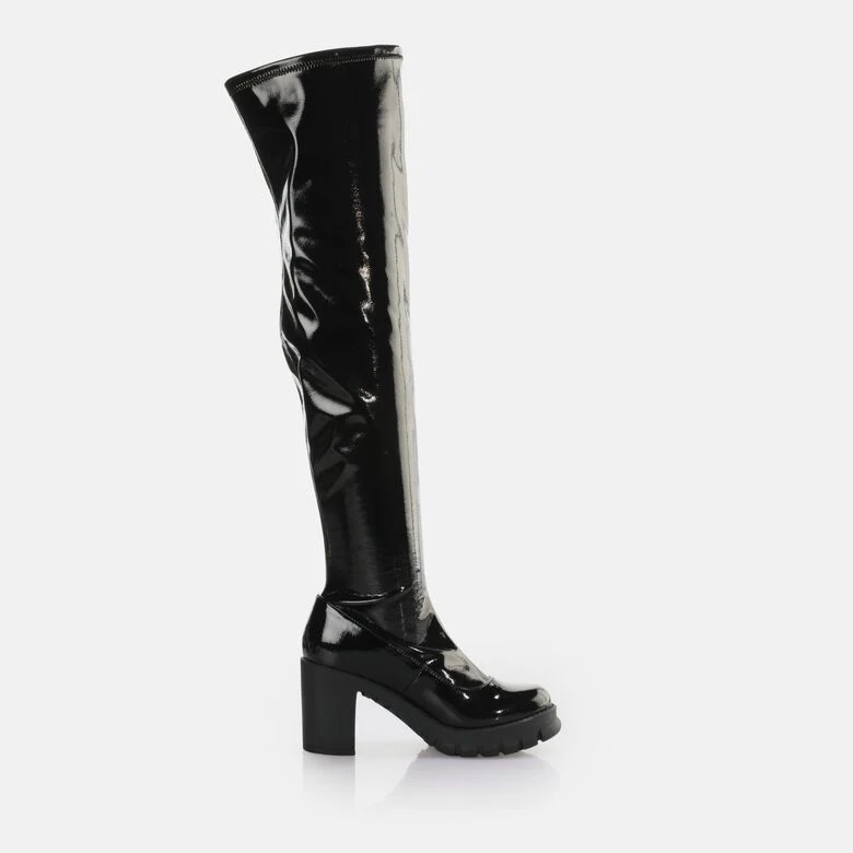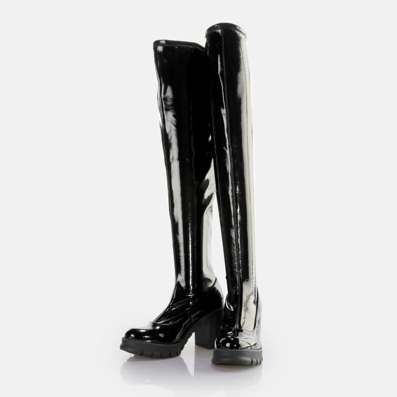 Das heiße Upgrade für die nächste Clubnight: Wenn Du einen unvergesslichen Auftritt liebst, sind die veganen Oslo Over Boots perfekt für Dich. Der hohe Schaft schmiegt sich sanft um Deine Beine und das shiny Design verleiht Dir einen eleganten und anziehenden Look. Dabei sichert Dir der hohe Blockabsatz garantiert alle Blicke. Dank der Memory Foam-Sohle genießt Du zudem höchsten Komfort.